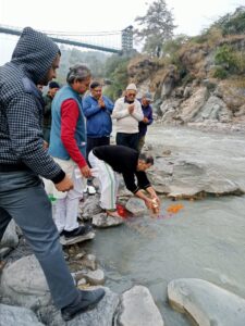 हल्द्वानी। जज फार्म निवासी एवं मूल रूप से बागेश्वर जनपद की कमस्यार घाटी के नरगोली गांव के रहने वाले, भारत-पाक युद्धों के वीर योद्धा कर्नल हरीश रौतेला की अस्थियों का विसर्जन शनिवार, 20 दिसंबर को रानीबाग स्थित चित्रशीला घाट में किया गया।